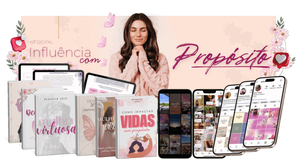 Mulher Cristã, você foi chamada para influenciar com fé – mas sem direção, tempo e estratégia, o seu chamado pode acabar sufocado pela rotina. O “Influência com Propósito” é a resposta prática e espiritual que você precisa para transformar sua rede social em um ministério ativo. Cada dia que passa sem esse material é uma oportunidade a menos de impactar vidas. Com conteúdos prontos, devocionais e planejamento, você vai levar a Palavra com constância, beleza e autoridade. Não espere mais. O tempo de cumprir seu chamado com excelência é AGORA!
